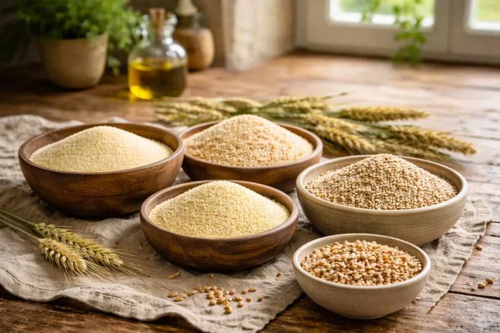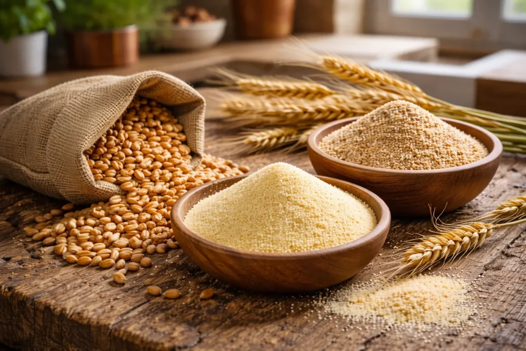 La semoule est une transformation spécifique du grain, avec un comportement distinct de la farine.