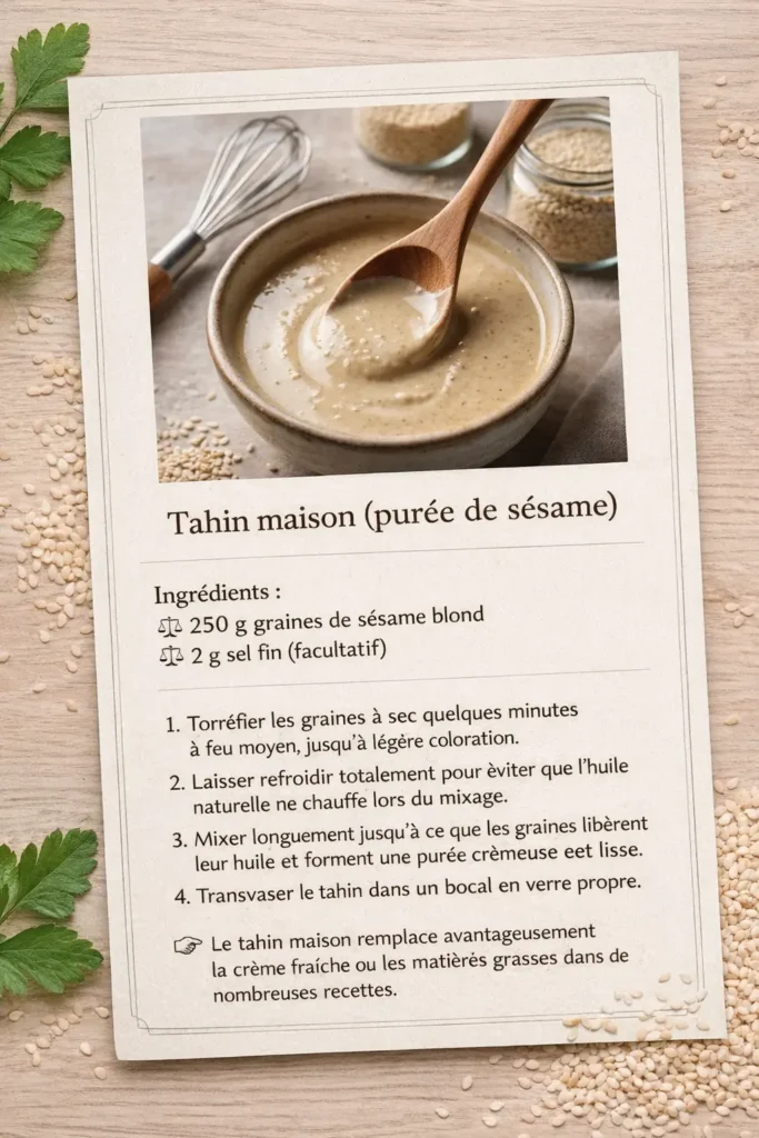 Le sésame étant riche en lipides, il est préférable de l’utiliser comme accent aromatique ou comme base de purée, plutôt qu’en grande quantité brute.