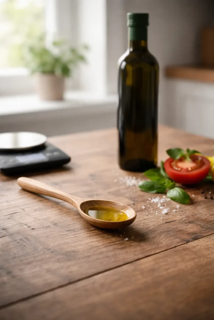 Une cuillère à soupe d’huile peut varier fortement selon le geste. Pour une cuisine précise et IG bas, la balance devient un repère.