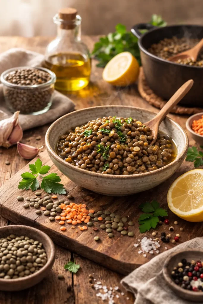 La cuisson s’effectue avec ⚖️ 1 volume de lentilles pour 3 volumes d’eau, à frémissement doux pendant 20 à 30 minutes selon la variété. Les lentilles corail nécessitent environ 15 minutes. Le salage intervient toujours en fin de cuisson afin de préserver la texture.