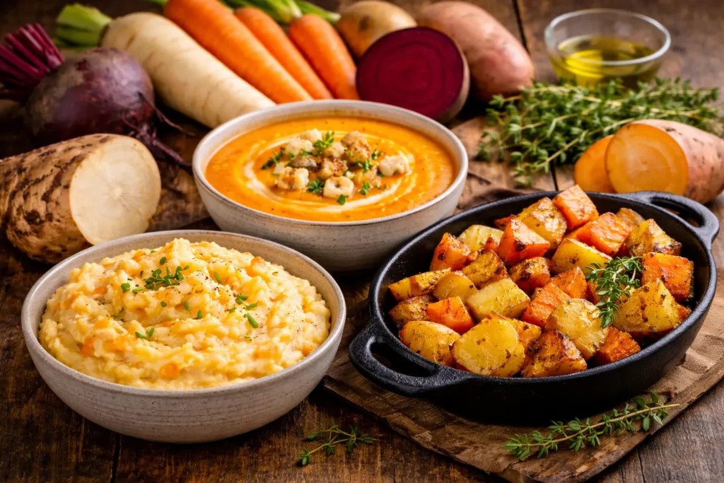 Les légumes racines sont également très utiles dans les plats complets, car ils apportent une base nourrissante et stable.
