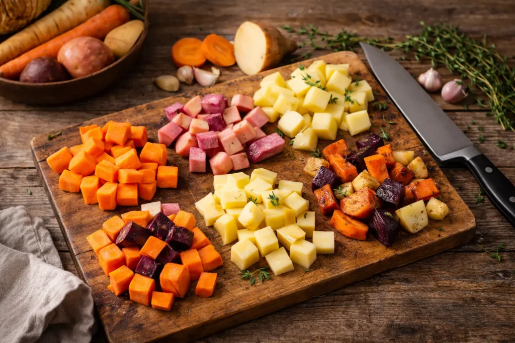 Les légumes racines peuvent souvent se remplacer entre eux, mais le résultat final change toujours un peu. Il est utile de raisonner non seulement en goût, mais aussi en texture.