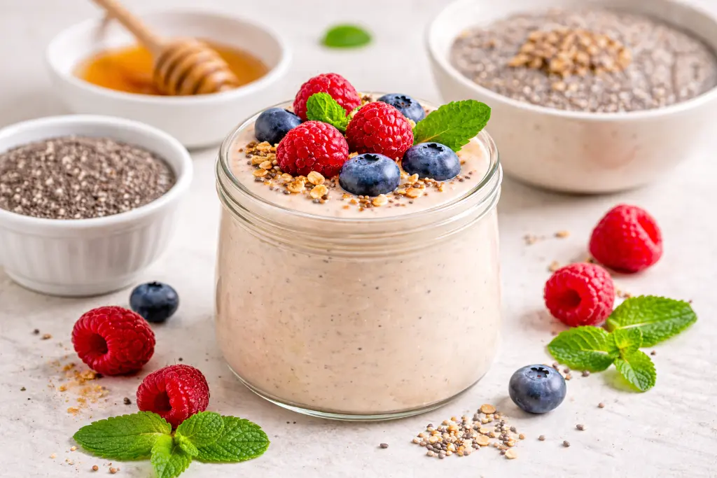 Petites par la taille mais puissantes par leurs propriétés physico-chimiques, les graines de chia occupent une place singulière en cuisine Saines & Gourmandes.Elles ne cherchent ni à remplacer ni à transformer une recette : elles la stabilisent, la sécurisent et l’accompagnent, sans jamais l’étouffer.