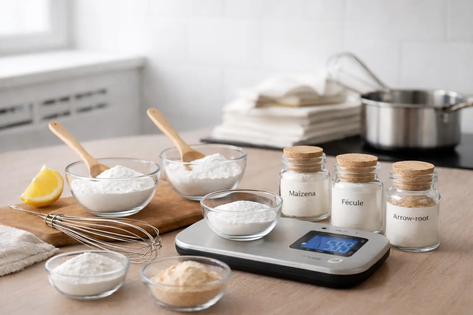 Les amidons, comme la fécule de pomme de terre, l’amidon de maïs ou l’arrow-root, sont des outils puissants mais chimiquement sensibles. La majorité des échecs ne vient ni de la recette ni de l’ingrédient, mais d’un déséquilibre entre la pesée, la température, l’environnement chimique et le geste. Cette fiche a pour objectif de comprendre ce qui se passe réellement lors de l’épaississement, afin de corriger sans approximation.