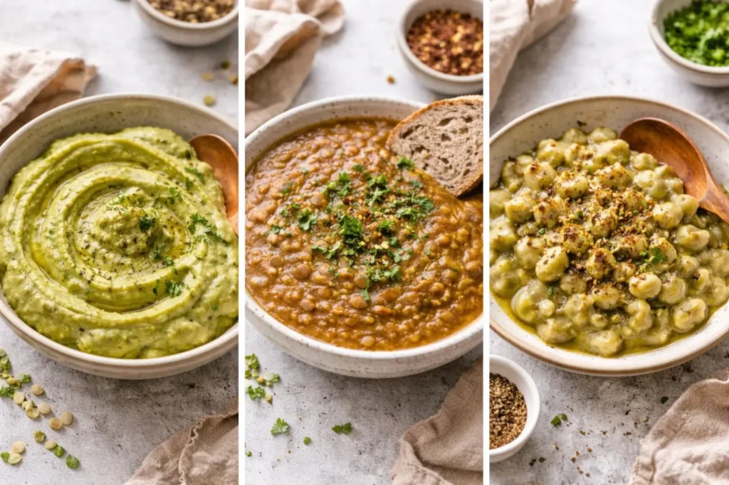 Les légumineuses mixées jouent naturellement ce rôle : pois cassés, lentilles, fèves ou haricots blancs apportent une liaison douce et stable tout en enrichissant la préparation en fibres et en protéines.
